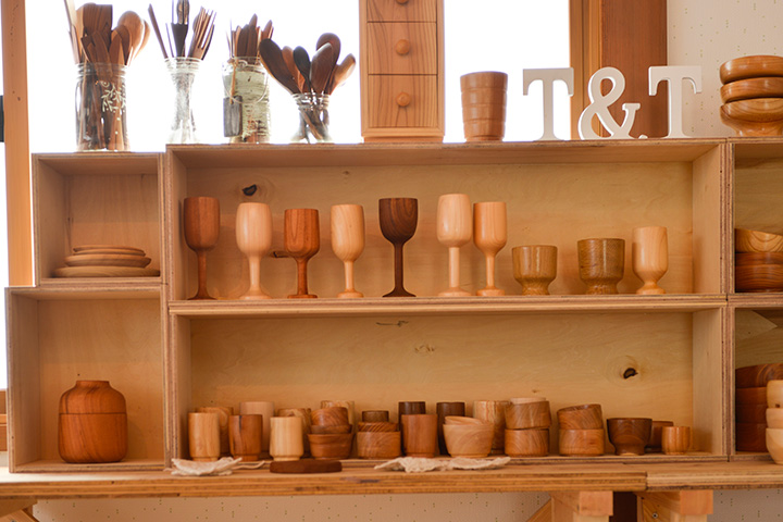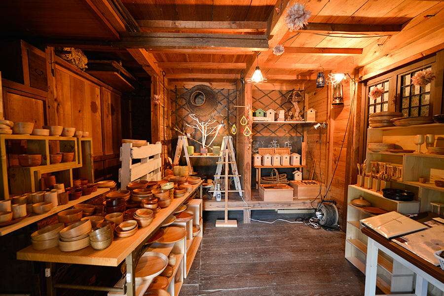 当社オフィスにある古い蔵では、手作り木工雑貨を販売しています。きっかけは、建設現場で出る端材を「何かに使えないかな」と感じたこと。創業者がもともと家具職人だったこともあり、食器や箱、まな板などオリジナル木工雑貨の製作をスタートしました。ショップだけでもお気軽にのぞいてみてください。